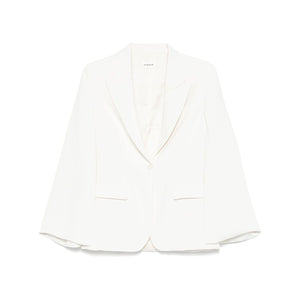 white front button fastening central rear vent chest welt pocket two front flap pockets Single-breasted blazer jacket Size and Fit - This piece fits true to size. We recommend you get your regular size. Model is 1,75m / 5ft 8in wearing size S