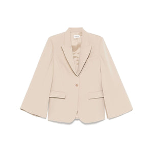 light beige front button fastening central rear vent chest welt pocket two front flap pockets Single-breasted blazer jacket Size and Fit - This piece fits true to size. We recommend you get your regular size. Model is 1,75m / 5ft 8in wearing size S