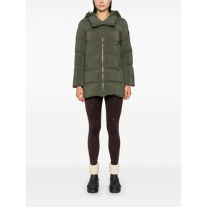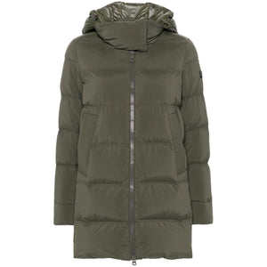 olive green padded design water-resistant front zip fastening high neck drawstring hood two press-stud fastening side pockets long sleeves appliqué logo full lining straight hem Unix ML Bmat down jacket Size and Fit - This piece fits true to size. We recommend you get your regular size. Model is 1,75m / 5ft 8in wearing size 40 (IT)