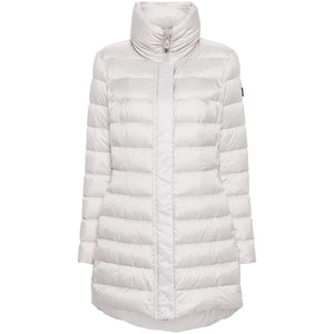 ash grey goose down padded design front press-stud and zip fastening high neck two side inset pockets long sleeves appliqué logo internal patch pockets straight hem Nylon midi down jacket Size and Fit - This piece fits true to size. We recommend you get your regular size. Model is 1,75m / 5ft 8in wearing size 40 (IT)