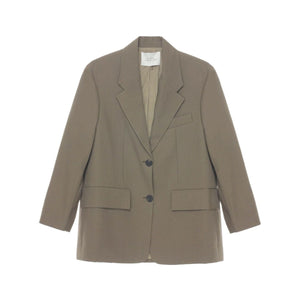 taupe brown cotton blend front button fastening notched lapels chest welt pocket front flap pockets long sleeves straight hem Wool single-breasted blazer jacket Size and Fit - This piece fits true to size. We recommend you get your regular size. Model is 1,75m / 5ft 8in wearing size 8 (UK)