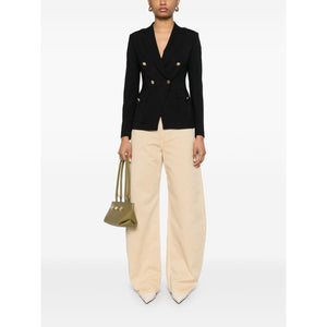 black double-breasted button fastening shoulder pads two side flap pockets rear central vent Wool double-breasted jacket Size and Fit - This piece fits true to size. We recommend you get your regular size. Model is 1,75m / 5ft 8in wearing size 40 (IT)