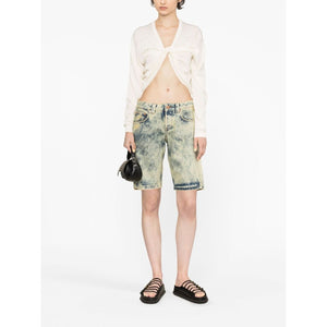 logo-patch denim shorts from Vaquera featuring blue, cotton, washed denim, logo patch to the rear, belt loops, front button and zip fastening, classic five pockets and knee-length. Denim split shorts Size and Fit - This piece fits true to size. We recommend you get your regular size. Model is 1,75m / 5ft 8in wearing size 27 (WAIST CM)
