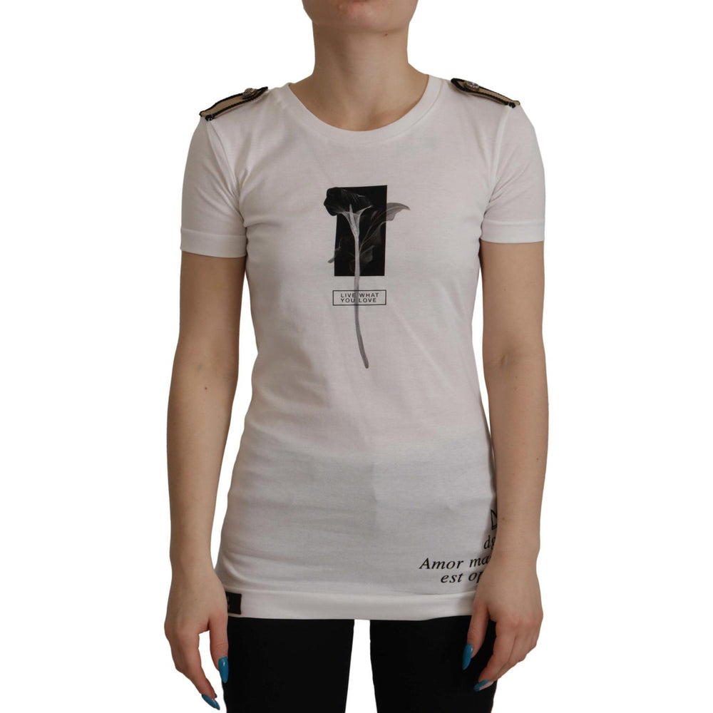 穿上这款华丽的全新 Dolce & Gabbana 圆领 T 恤,优雅地迎接春天的到来。清爽的白色背景上装饰着醒目的黑玫瑰和真挚的“Amore”字样,代表着该品牌浪漫的意大利根源。这款 T 恤采用纯棉剪裁而成,既奢华又舒适,是您精心挑选的衣橱的完美补充。徽标细节巧妙地放大了其高端设计师的地位,展示了 Dolce & Gabbana 的品质和工艺,所有这些都是在意大利精心制作的。