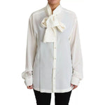 Dolce & Gabbana White Blouse Ascot Collar Shirt Silk Top