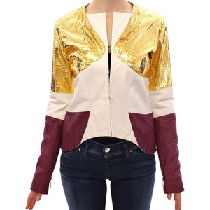 穿上我们令人惊叹的 Vladimiro Gioia 白色、金色金属色和紫色皮夹克,探索奢华的典范。这款夹克非常适合那些追求独特和高端时尚的人,融合了意大利工艺和前卫风格。这款夹克采用醒目的金属鳄鱼纹和时尚设计,是一件必定能提升任何服装的亮点单品。它配有方便的前袋和别致的金色钩扣,完美融合了时尚和功能。这款精美的稀有单品彰显大胆的时尚风格,让您在人群中脱颖而出。