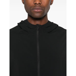 black front two-way zip fastening two side zip-fastening pockets reflective detailing tulle panels M Run hooded jacket Size and Fit - This piece fits true to size. We recommend you get your regular size. Model is 1,84m / 6ft 1in wearing size M
