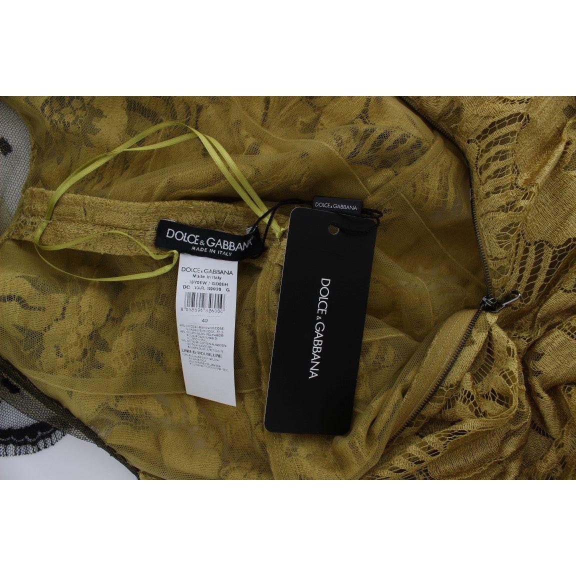 这款 Dolce & Gabbana 的全长紧身连衣裙令人惊艳,饰有优雅的黄色和黑色花卉蕾丝图案,彰显优雅气质。这款连衣裙设计迷人,配有时尚的后拉链开合和标志性徽标细节,彰显其真实性和意大利工艺。